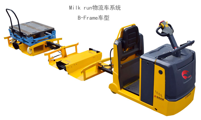 B-Frame物流車是Milk run物流車可循環物料配送系統中的一種車型,因具有兩側任意方向裝載DOLLY手推小車的特性,所以操作更簡單、實用,還具有體積小巧,轉向靈活等特點,特別適用于室內平整路面進行物料的配送方式。